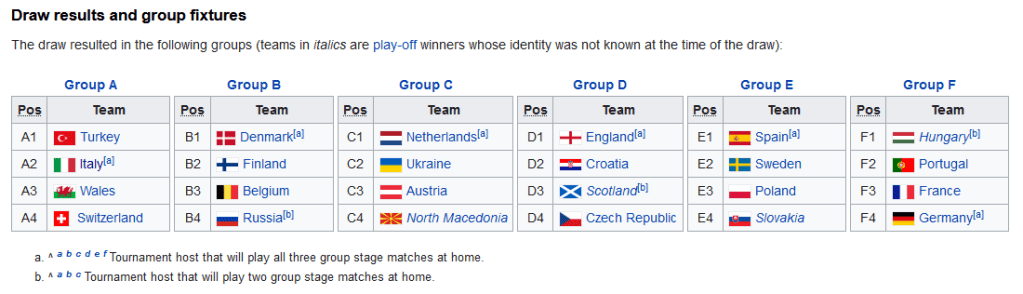 Italy and Turkey kicked off Euro 2020 earlier today with a rousing 3-0 victory for Gli Azzurri (The Blues, thank you Wikipedia). This is a very exciting time for soccer fans everywhere. Europe features most of the top tier Men’s National Teams in the world, and this is the next best tournament to the World Cup (outside of the CONCACAF Nations League, obvs).